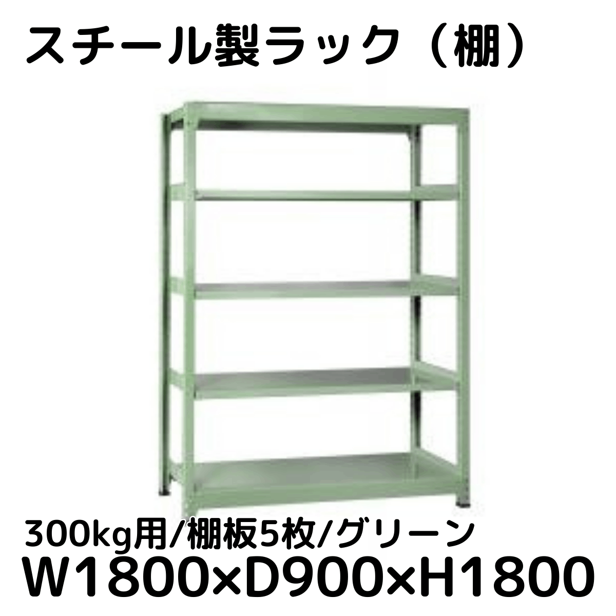 【CWD-R35889G】スチール製ラック 棚 (グリーン) 300kg用 棚板5枚 W1800*D900*H1800