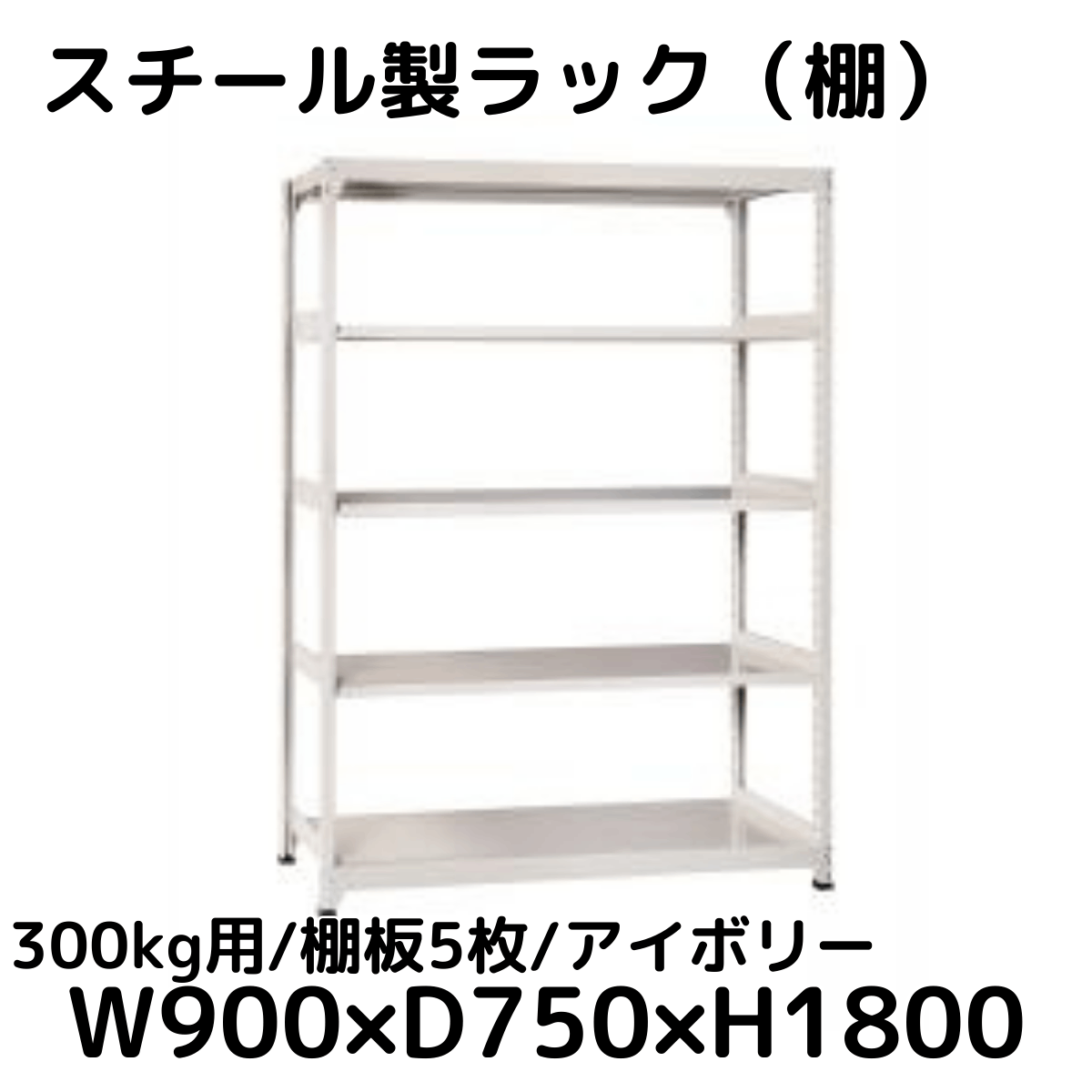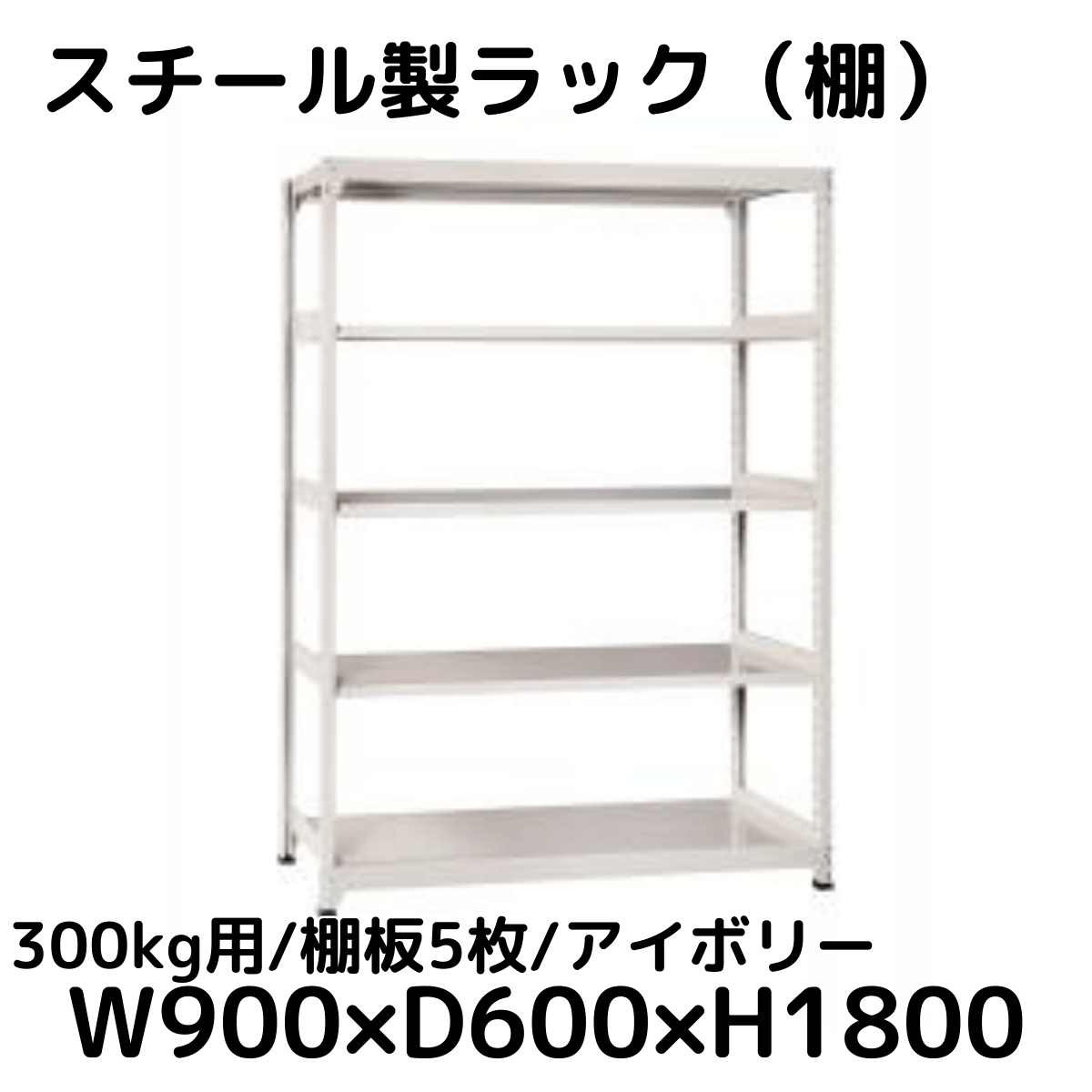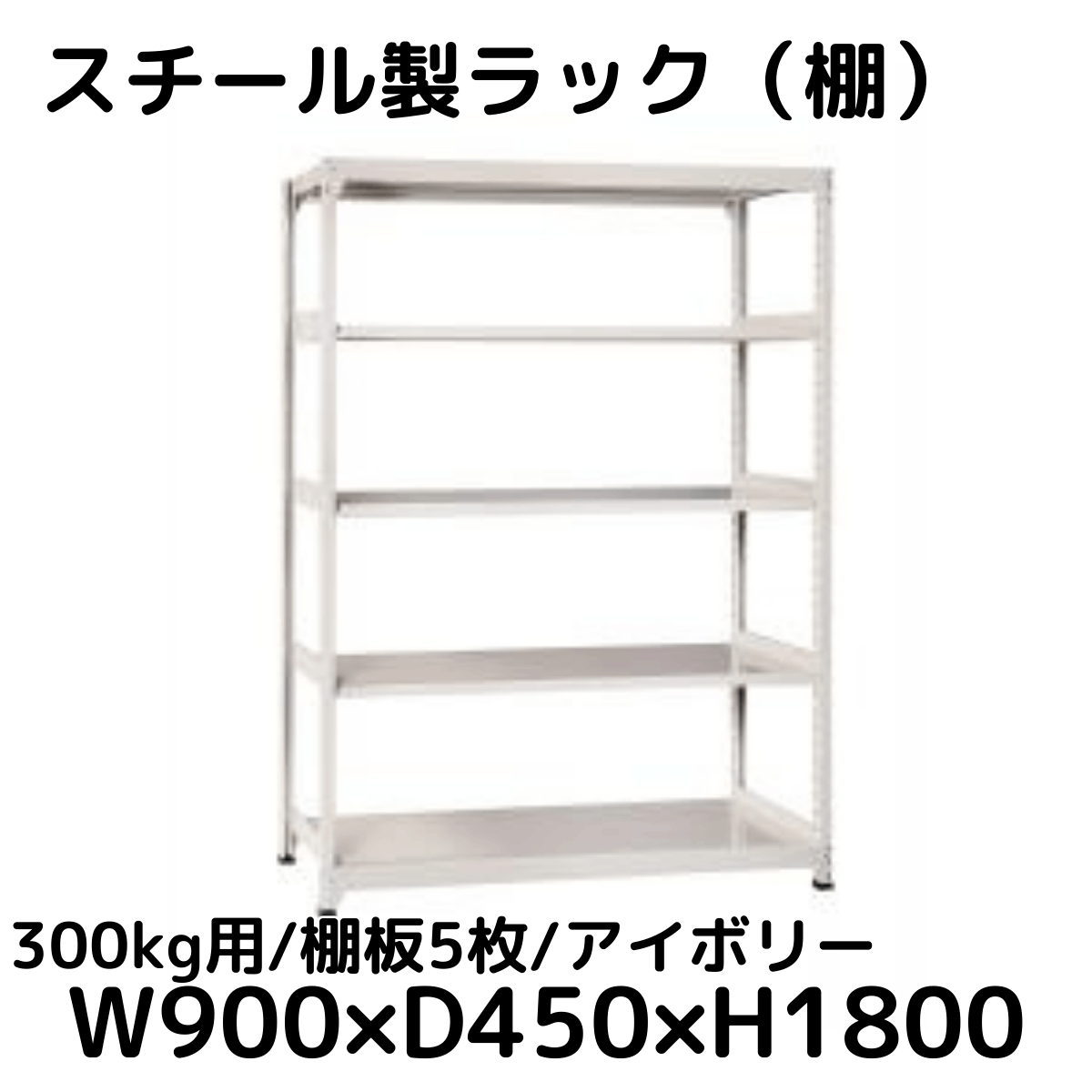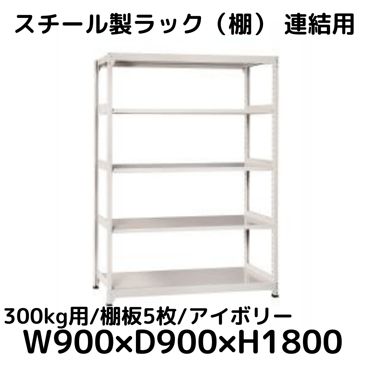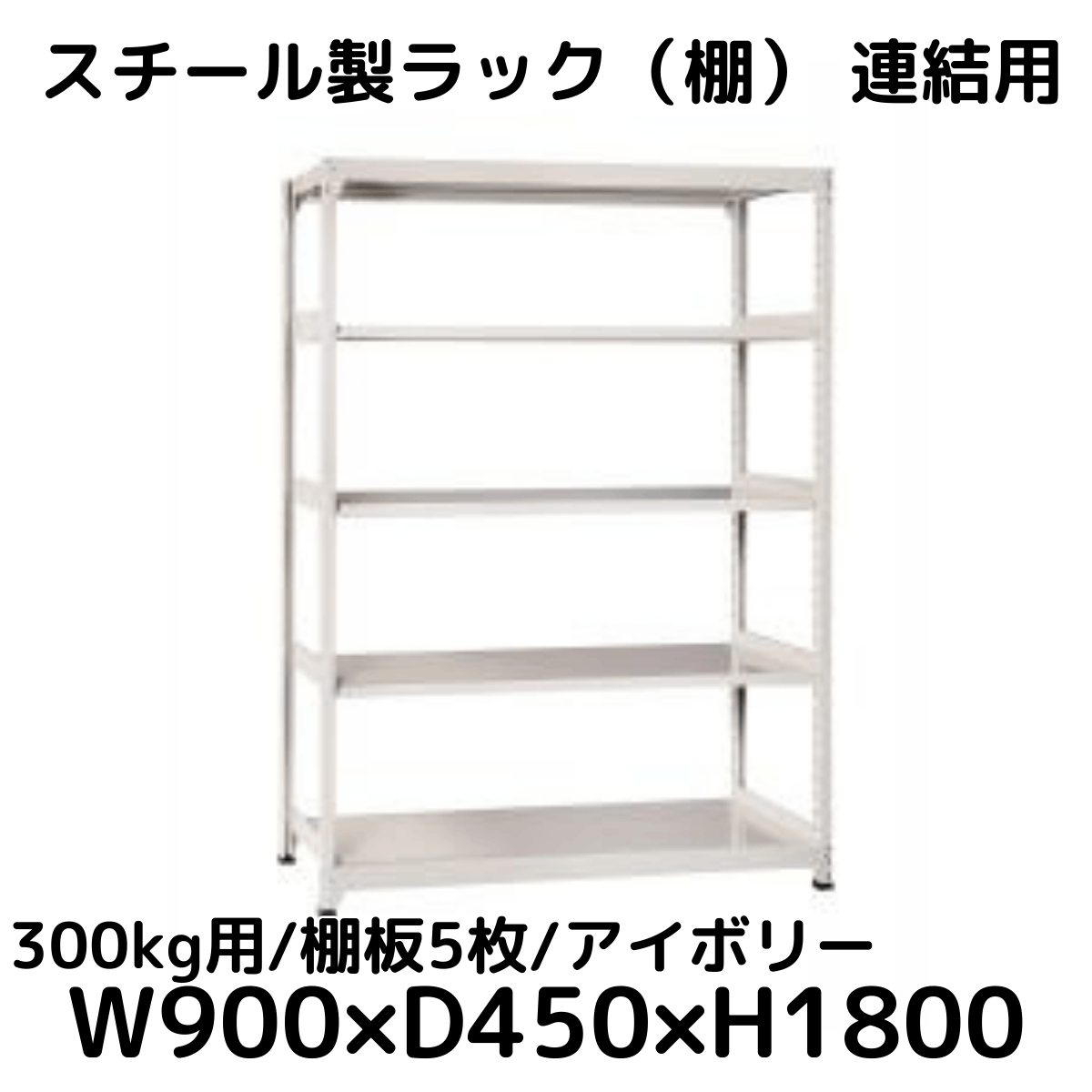 【CWD-R35894TI】スチール製ラック 棚 連結用(アイボリー) 300kg用 棚板5枚 W900*D450*H1800