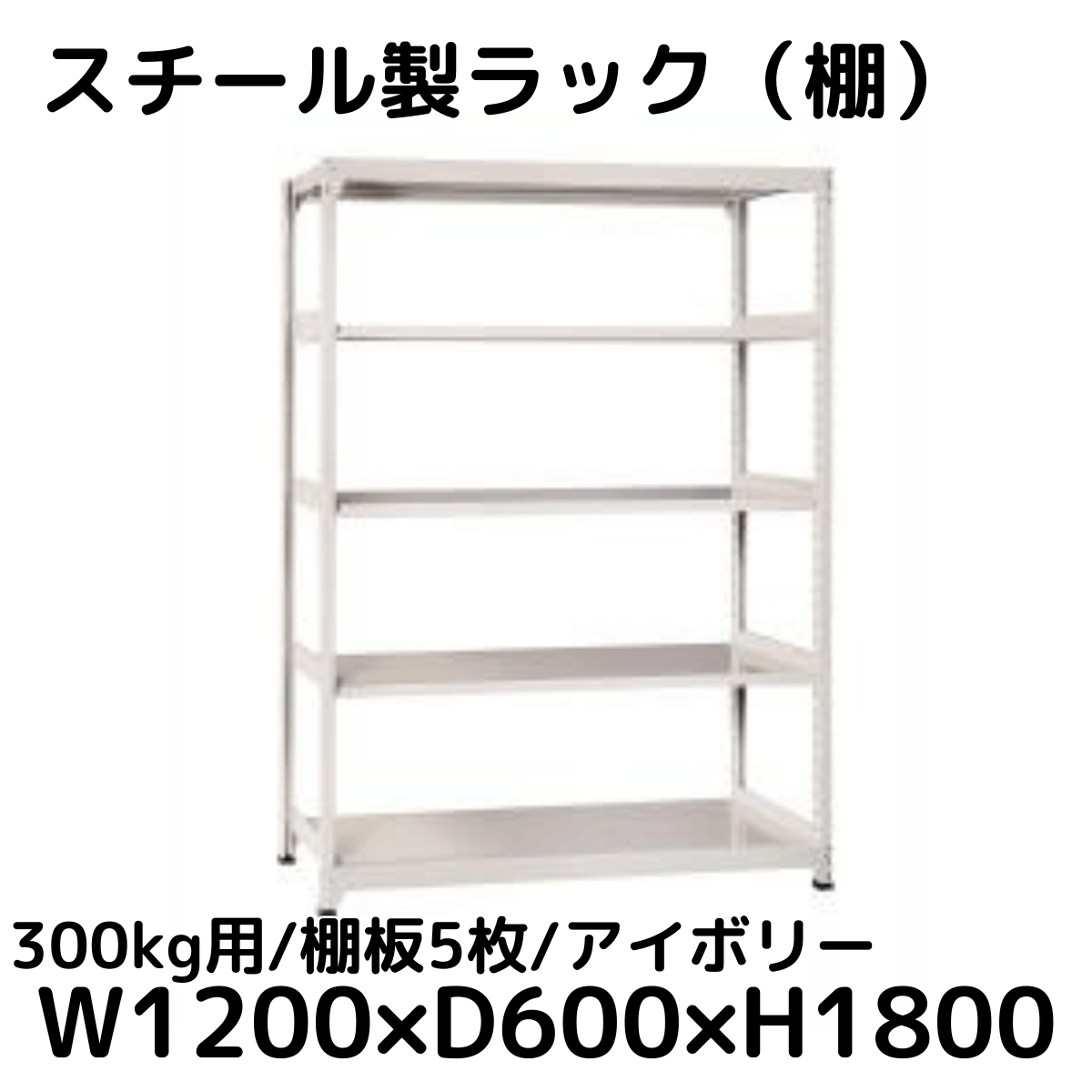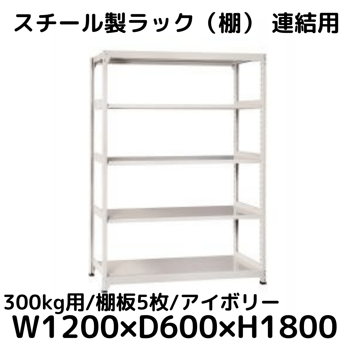 【CWD-R35826TI】スチール製ラック 棚 連結用(アイボリー) 300kg用 棚板5枚 W1200*D600*H1800
