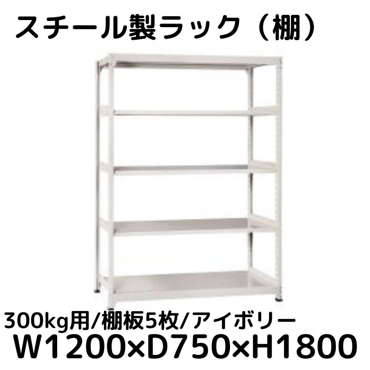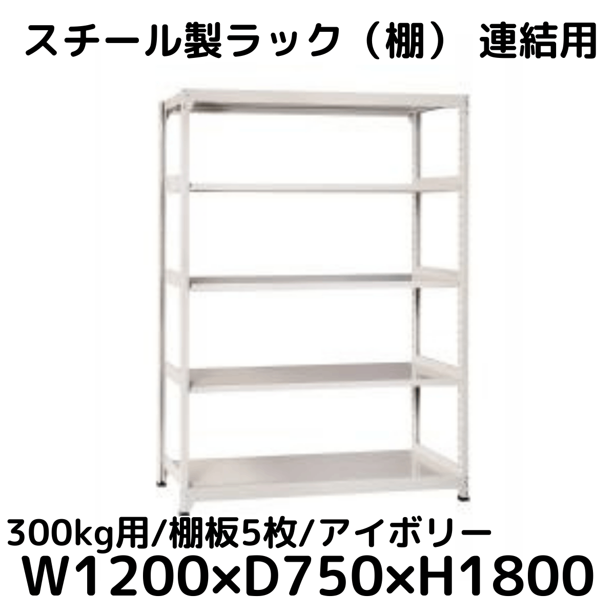 【CWD-R35827TI】スチール製ラック 棚 連結用(アイボリー) 300kg用 棚板5枚 W1200*D750*H1800