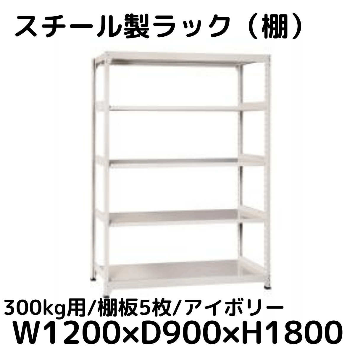 【CWD-R35829I】スチール製ラック 棚 (アイボリー) 300kg用 棚板5枚 W1200*D900*H1800
