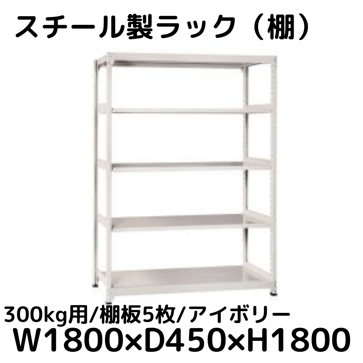 【CWD-R35884I】スチール製ラック 棚 (アイボリー) 300kg用 棚板5枚 W1800*D450*H1800