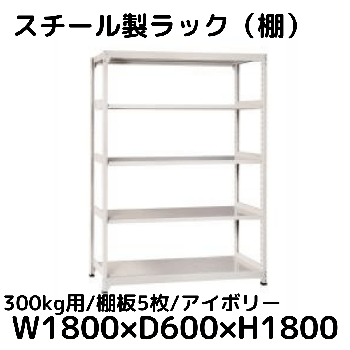 【CWD-R35886I】スチール製ラック 棚 (アイボリー) 300kg用 棚板5枚 W1800*D600*H1800