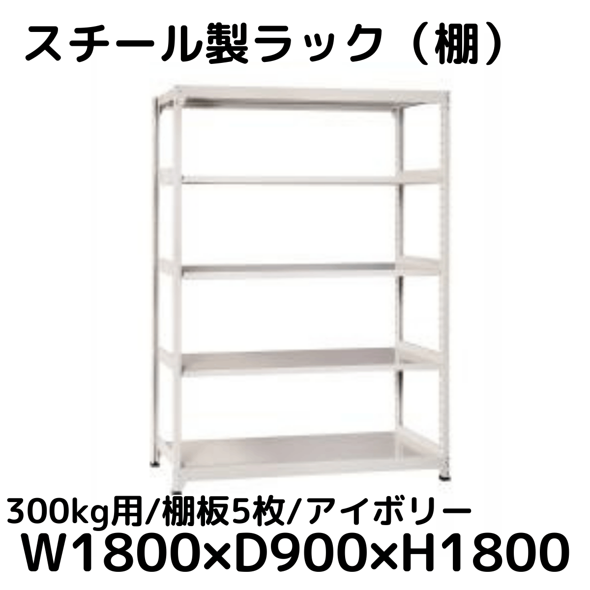 【CWD-R35889I】スチール製ラック 棚 (アイボリー) 300kg用 棚板5枚 W1800*D900*H1800
