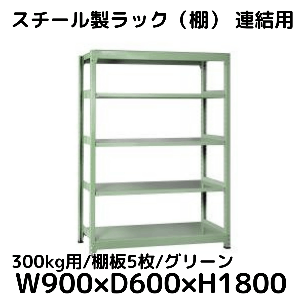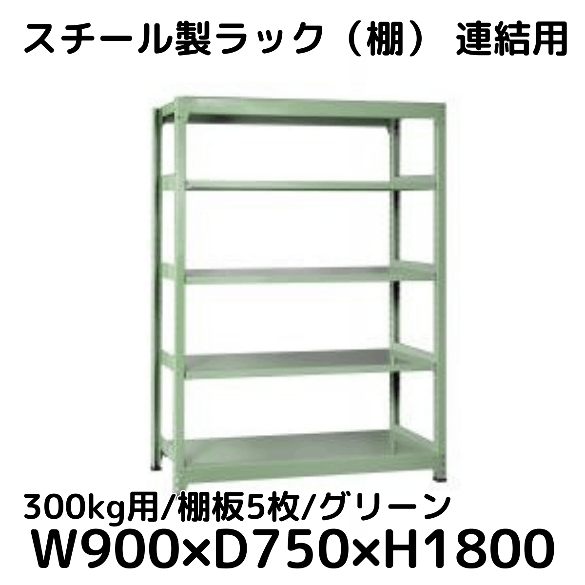 【CWD-R35894TG】スチール製ラック 棚 連結用(グリーン) 300kg用 棚板5枚 W900*D450*H1800