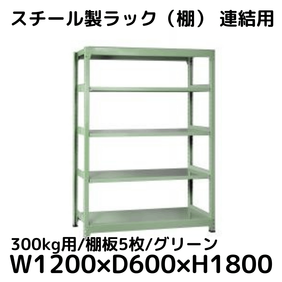 【CWD-R35826TG】スチール製ラック 棚 連結用(グリーン) 300kg用 棚板5枚 W1200*D600*H1800