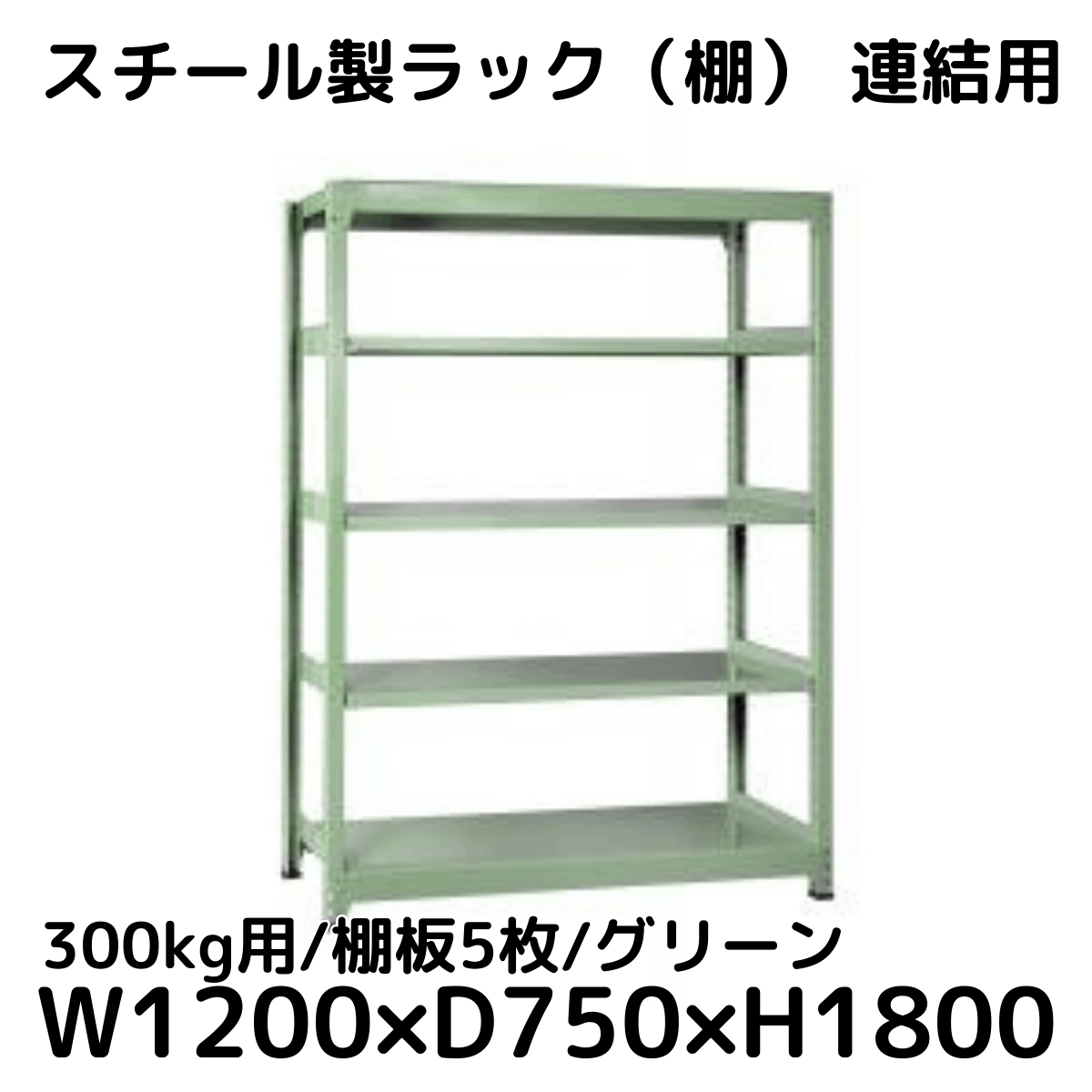 【CWD-R35827TG】スチール製ラック 棚 連結用(グリーン) 300kg用 棚板5枚 W1200*D750*H1800