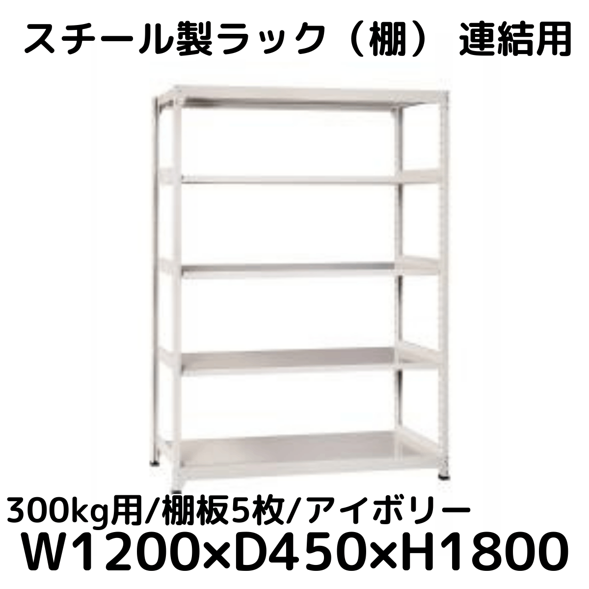 【CWD-R35824TI】スチール製ラック 棚 連結用(アイボリー) 300kg用 棚板5枚 W1200*D450*H1800