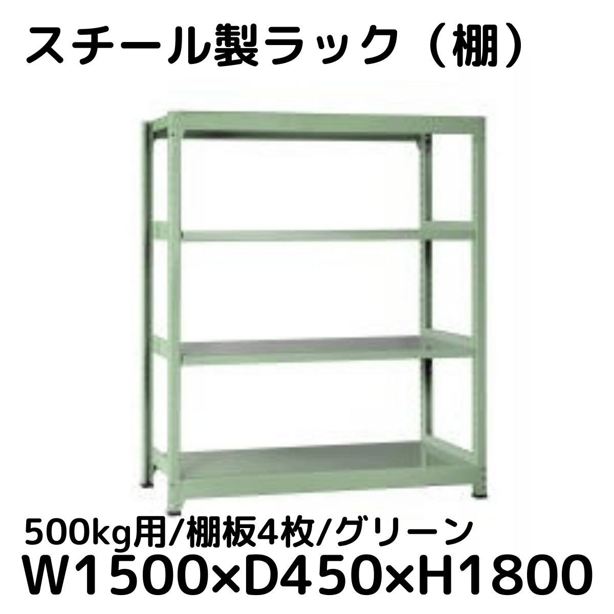 【CWD-R54854G】スチール製ラック 棚 (グリーン) 500kg用 棚板4枚 W1500*D450*H1800