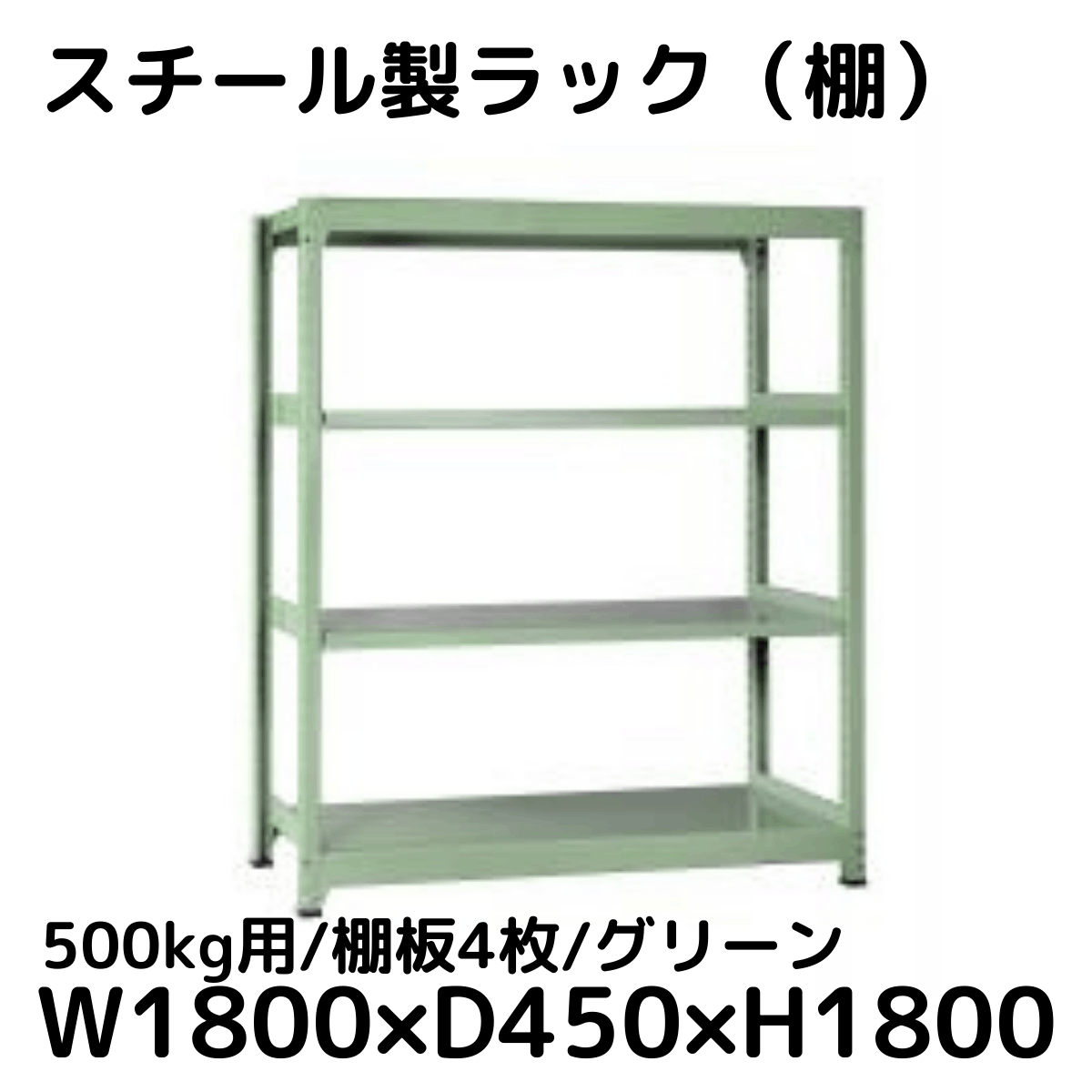【CWD-R54884G】スチール製ラック 棚 (グリーン) 500kg用 棚板4枚 W1800*D450*H1800