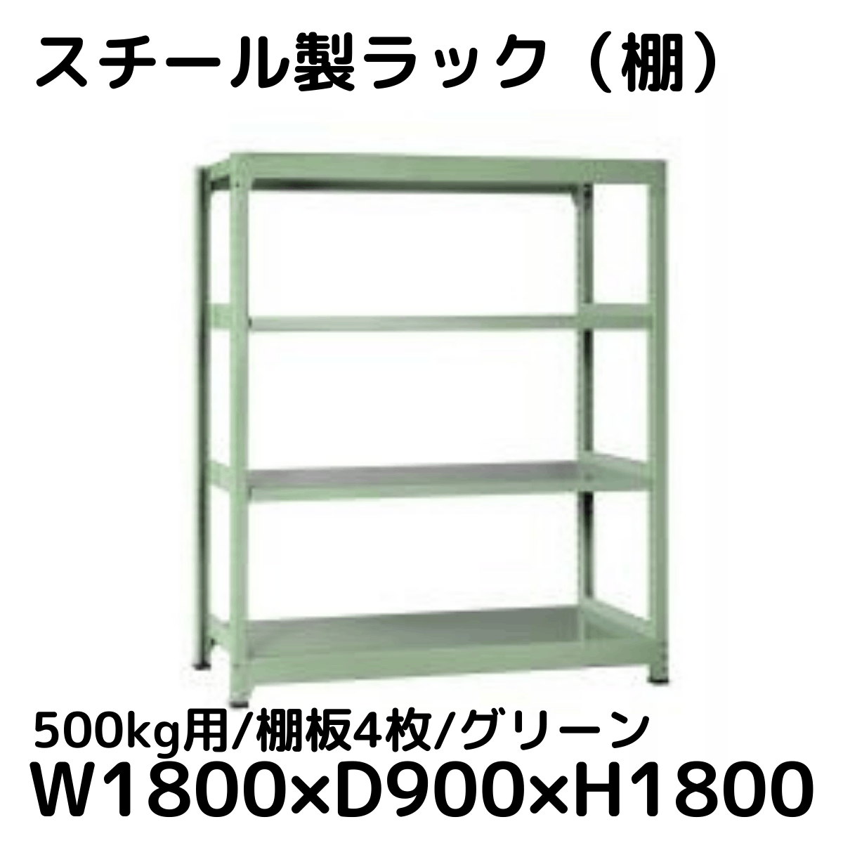 【CWD-R54889TG】スチール製ラック 棚 連結用(グリーン) 500kg用 棚板4枚 W1800*D900*H1800