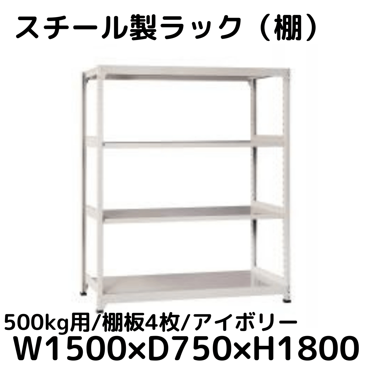 【CWD-R54857TI】スチール製ラック 棚 連結用(アイボリー) 500kg用 棚板4枚 W1500*D750*H1800