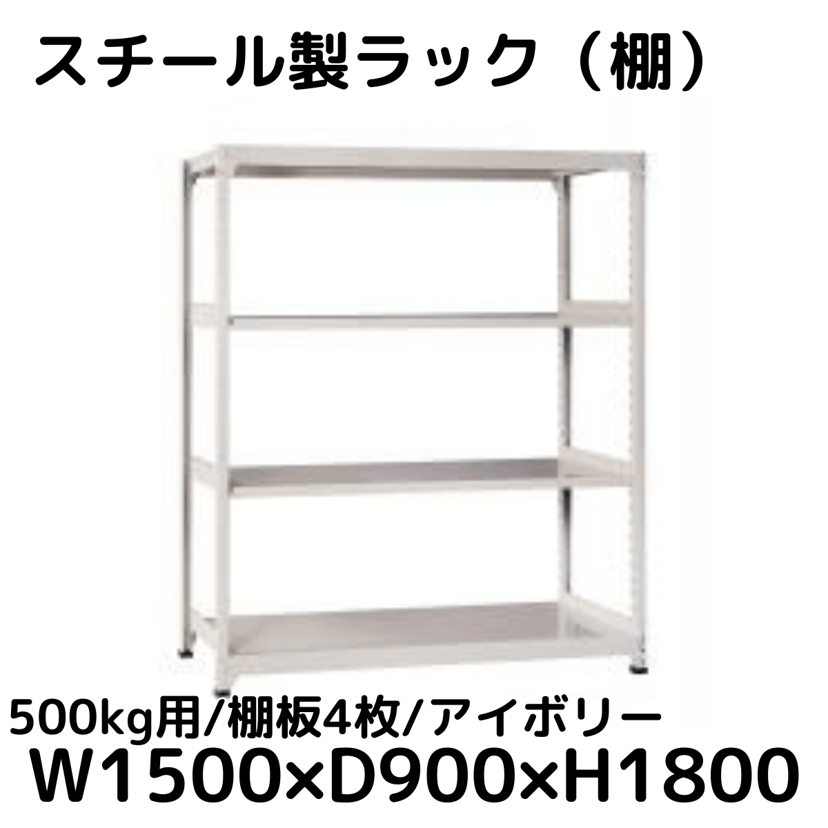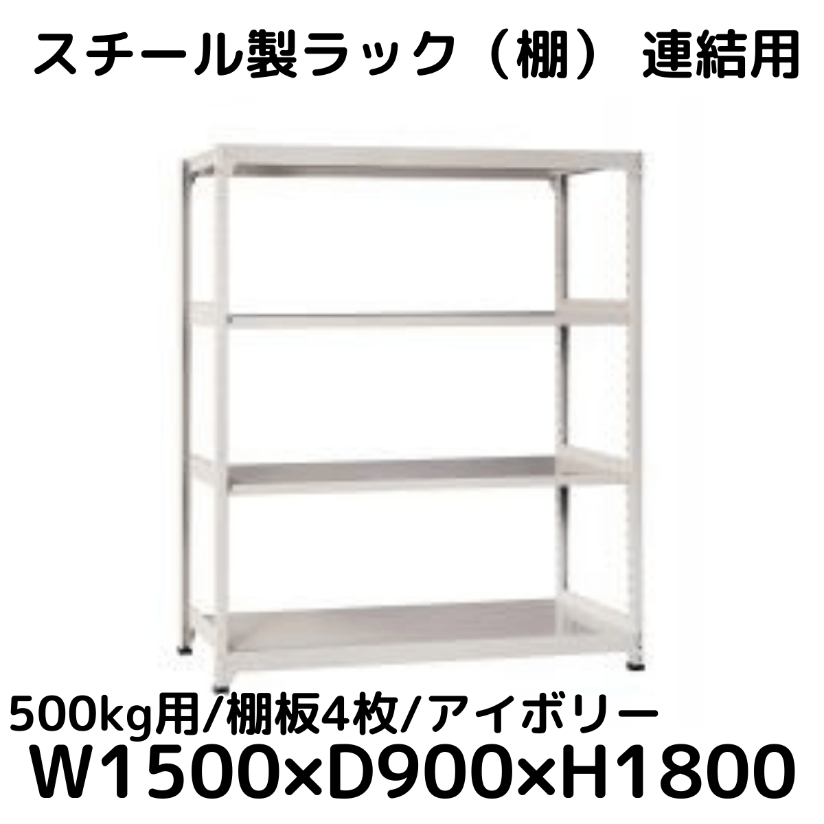 【CWD-R54859TI】スチール製ラック 棚 連結用(アイボリー) 500kg用 棚板4枚 W1500*D900*H1800
