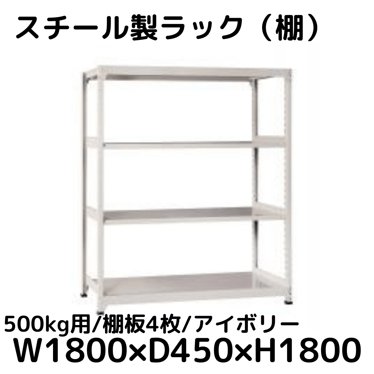 【CWD-R54884TI】スチール製ラック 棚 連結用(アイボリー) 500kg用 棚板4枚 W1800*D450*H1800
