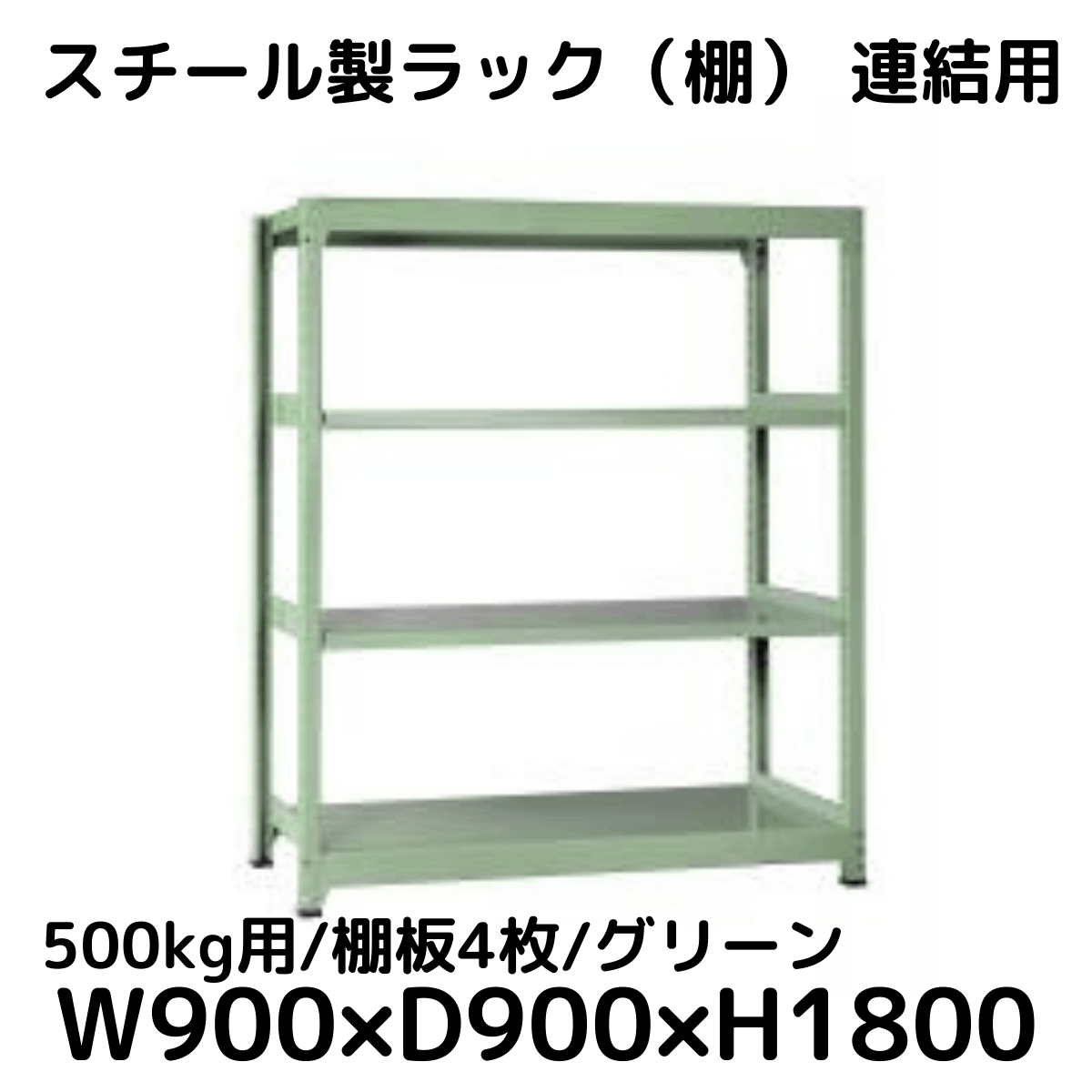 【CWD-R54899TG】スチール製ラック 棚 連結用(グリーン) 500kg用 棚板4枚 W900*D900*H1800