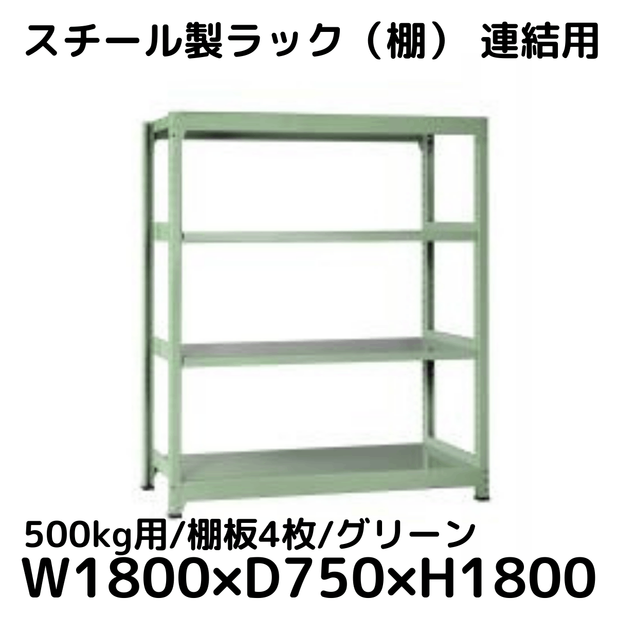 【CWD-R54887TG】スチール製ラック 棚 連結用(グリーン) 500kg用 棚板4枚 W1800*D750*H1800