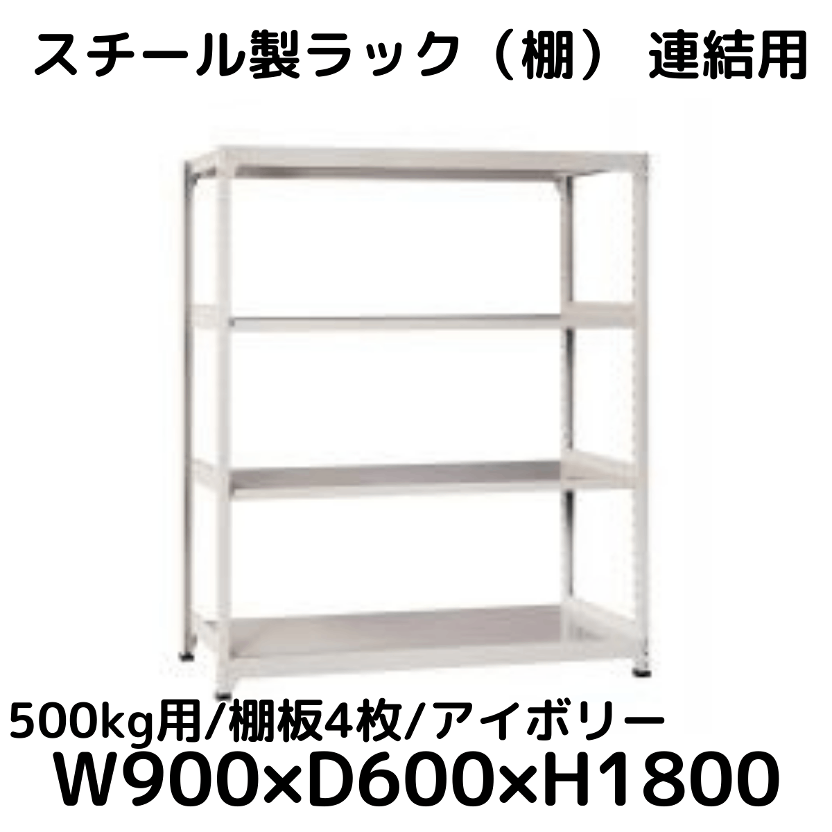 【CWD-R54899TI】スチール製ラック 棚 連結用(アイボリー) 500kg用 棚板4枚 W900*D900*H1800