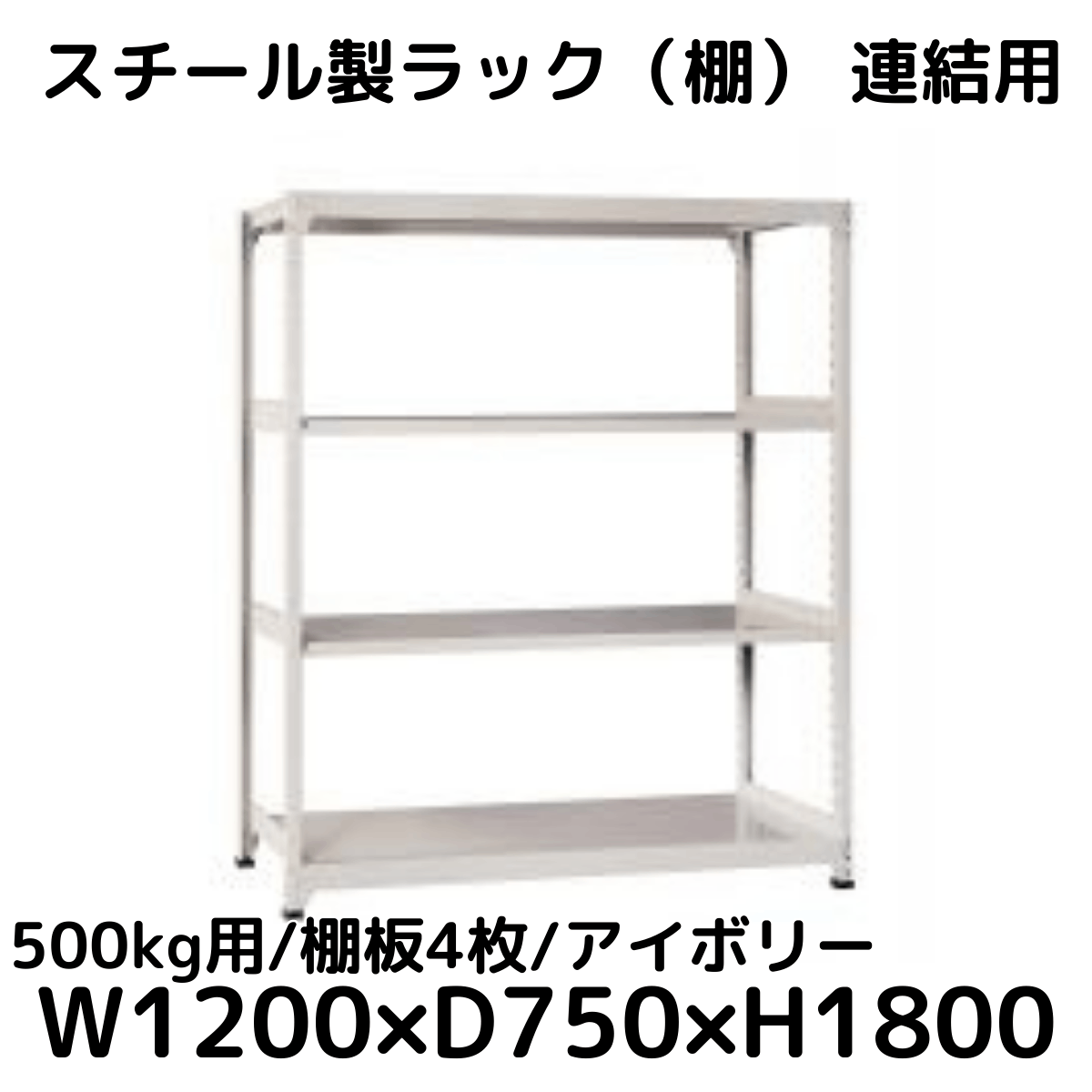 【CWD-R54827TI】スチール製ラック 棚 連結用(アイボリー) 500kg用 棚板4枚 W1200*D750*H1800