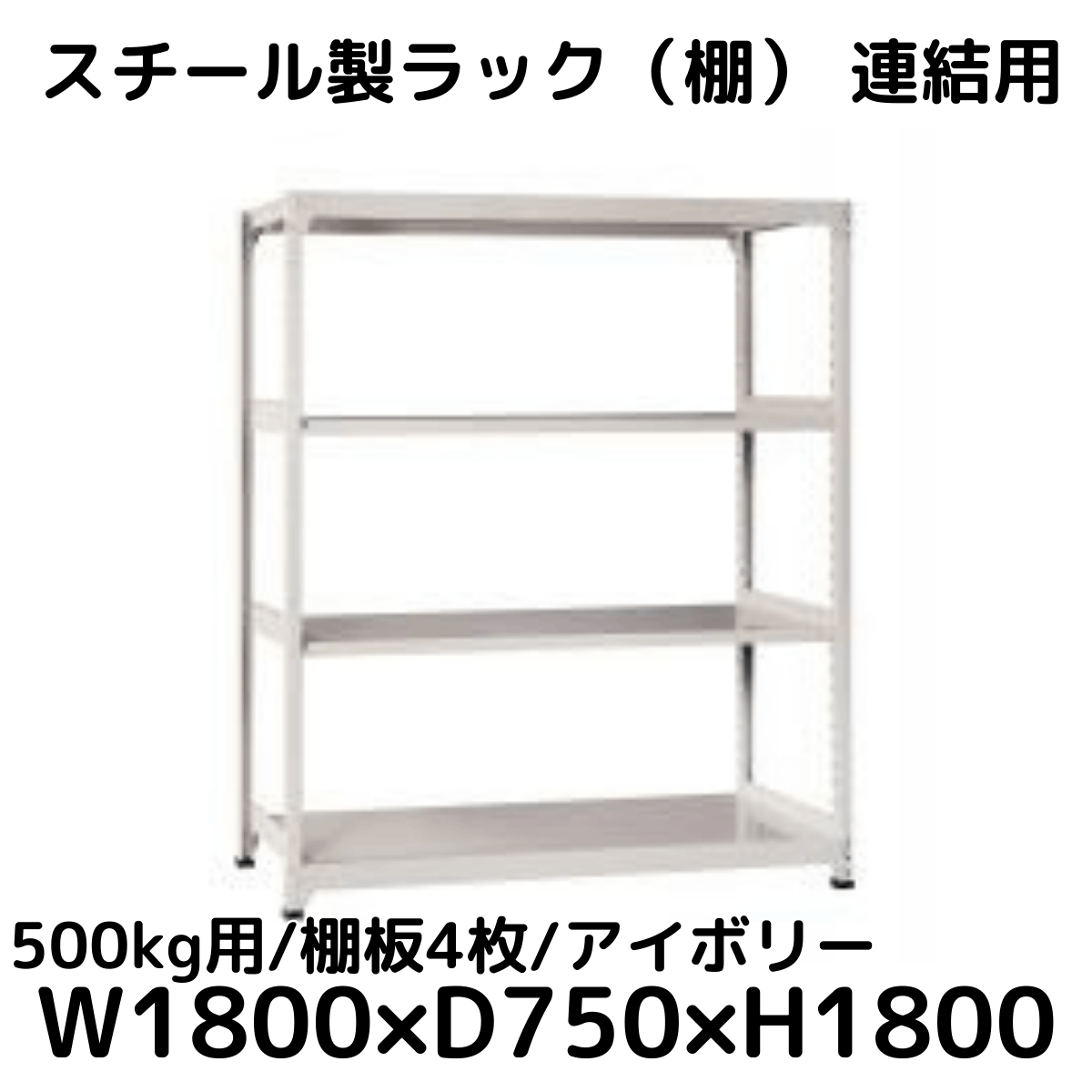 【CWD-R54887TI】スチール製ラック 棚 連結用(アイボリー) 500kg用 棚板4枚 W1800*D750*H1800