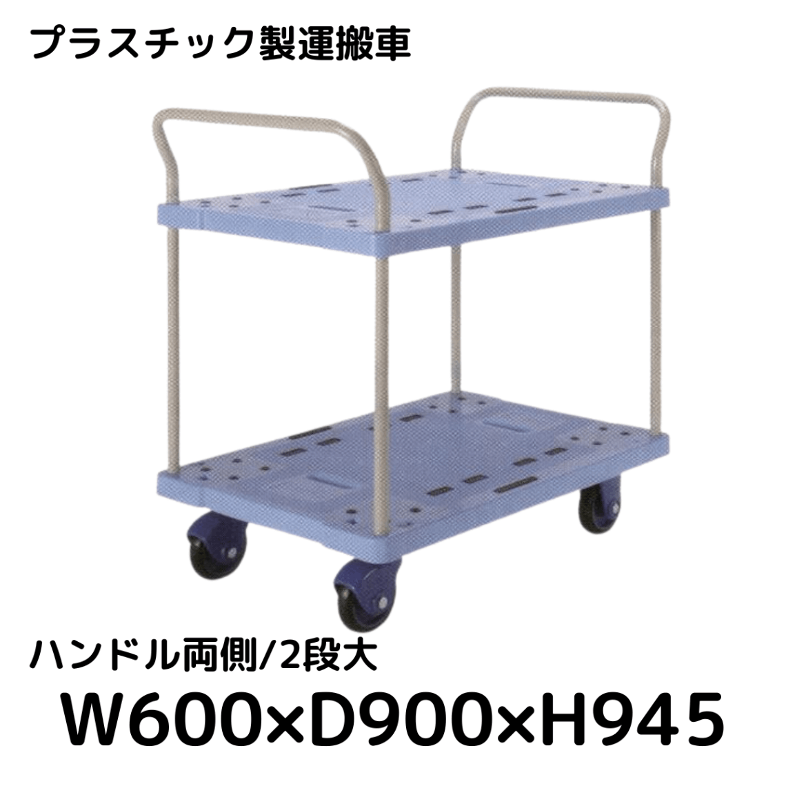 【CWD-GCP304】プラスチック製運搬車 2段 両側ハンドル式(大) W600*D900*H945