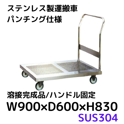 【CWD-P096】ステンレス製運搬車/ハンドル固定・パンチング仕様 SUS304 W900×D600×H830